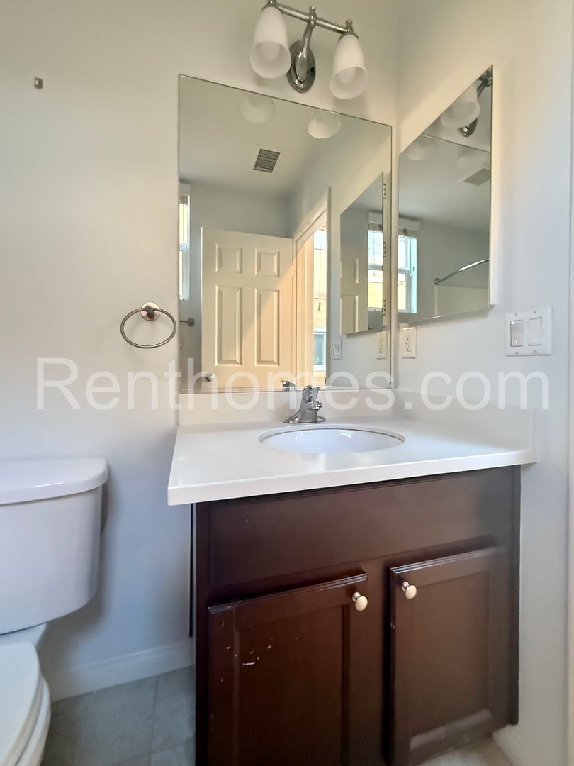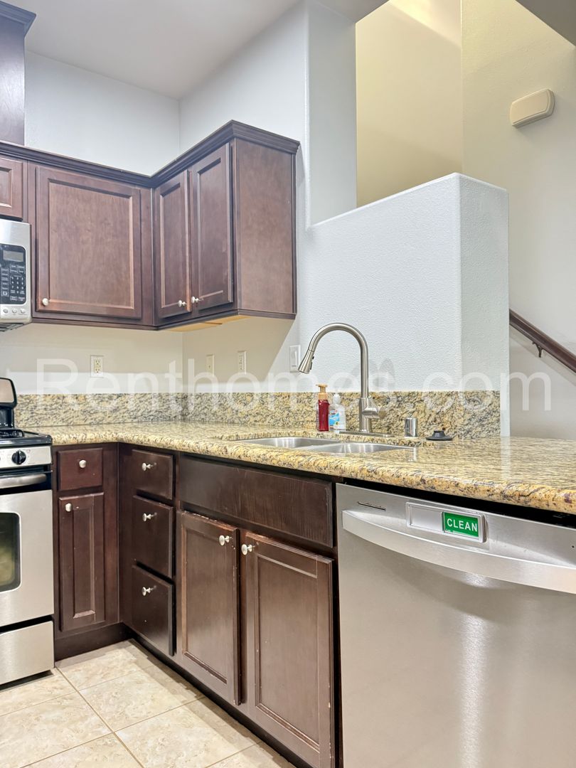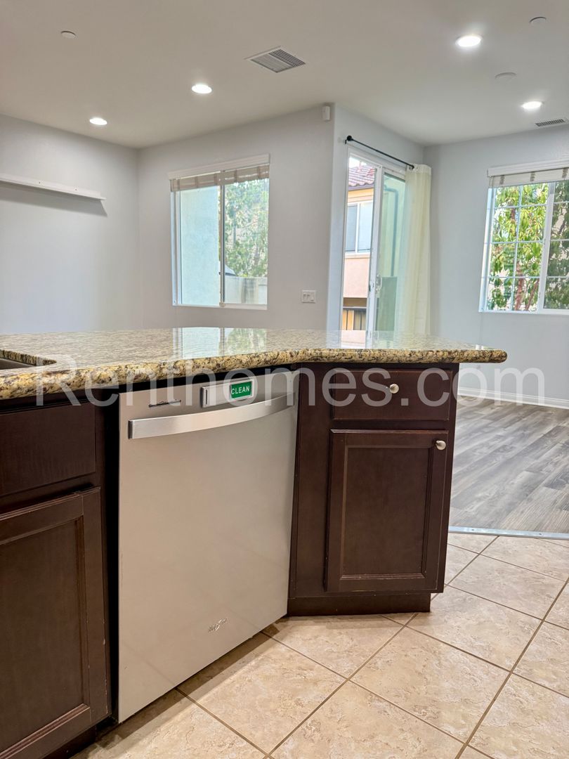 Welcome to Oceanside, 5080 Tranquil Wy #104, a stunning three-bedroom, three-bathroom townhouse located in the gated North River Village Development in Oceanside, CA. This modern home, built in 2012, boasts a range of high-quality features including Faux Wood Luxury Vynil Plank and ceramic tile flooring, granite counters, and stainless steel appliances. The living room is enhanced by a custom built-in entertainment center, while all bedrooms are equipped with ceiling fans and light fixtures, with the second bedroom having its own private bathroom. The attached two-car garage is not only convenient but also features epoxy coated floors and built-in storage cabinets. The kitchen is fully equipped with a microwave, refrigerator, and dishwasher. The property also includes a balcony, perfect for enjoying the California sun. The community offers a pool and spa, a BBQ area, and easy access to walking trails along the San Luis Rey River. The location is ideal, being near the back gate to Camp Pendleton, the bus transit center, Guajome Park, and various shopping centers. Please note, no pets or co-signers are allowed. This townhouse offers a blend of comfort, style, and convenience, making it a perfect choice for your next home.