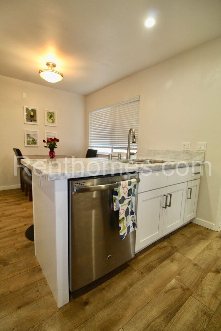 Welcome home to this beautifully remodeled single level home in the 55+ Seven Oaks community of Rancho Bernardo. Conveniently located about 2/10 mile from the Seven Oaks community facilities including community pool, spa, shuffleboard and many clubs and activities. Near Shopping and freeway access. Dual pane windows and laminate wood flooring throughout. Living room has recessed lighting and a gas log fireplace. Eat in kitchen has recessed lighting, sparkling granite counters and stainless steel appliances. Bedroom #1 has a ceiling mounted light fixture and direct access to the hall bathroom. Spacious hall bathroom has tile floors, quartz vanity, custom cabinetry and stainless-steel appliances. Master bedroom has a ceiling mounted light fixture, 2 closets (one with mirrored wardrobe doors), alcove that is perfect for a desk or reading chair, tile bathroom floors, quartz vanity with double sinks and a tub/shower combo.