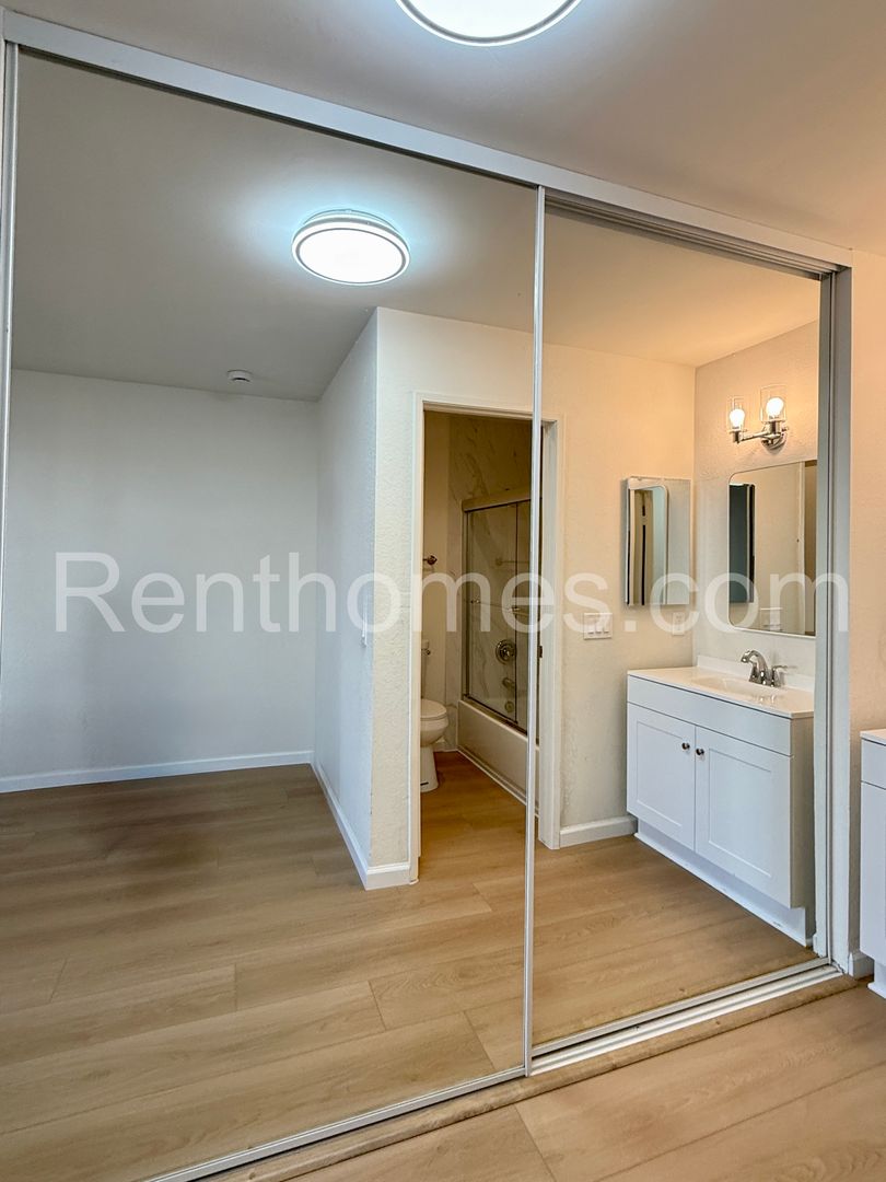 Welcome to Mira Mesa, 8480 New Salem St #101, a fully remodeled condo located in the heart of San Diego, CA. This one-bedroom, one-bathroom corner unit is part of the Villas at New Salem Complex and offers a host of modern amenities. The kitchen is equipped with a microwave, refrigerator, dishwasher, and gas stove, and features quartz counters and soft close drawers and doors on the cabinets. The condo also includes washer and dryer hookups for your convenience. The interior, fully remodeled in December 2025, boasts faux wood luxury vinyl plank floors and mirrored wardrobe doors, adding a touch of elegance to the space. The condo is located on the first of two stories and comes with one covered parking space. Enjoy the San Diego weather on your own covered patio or take a dip in the community pool and spa. The location is unbeatable, with shopping, restaurants, a community park, and a public library nearby. Please note, the wall air conditioner is in "as-is" condition and unfortunately, no pets or co-signers are allowed. Experience the best of San Diego living at Mira Mesa, 8480 New Salem St #101.