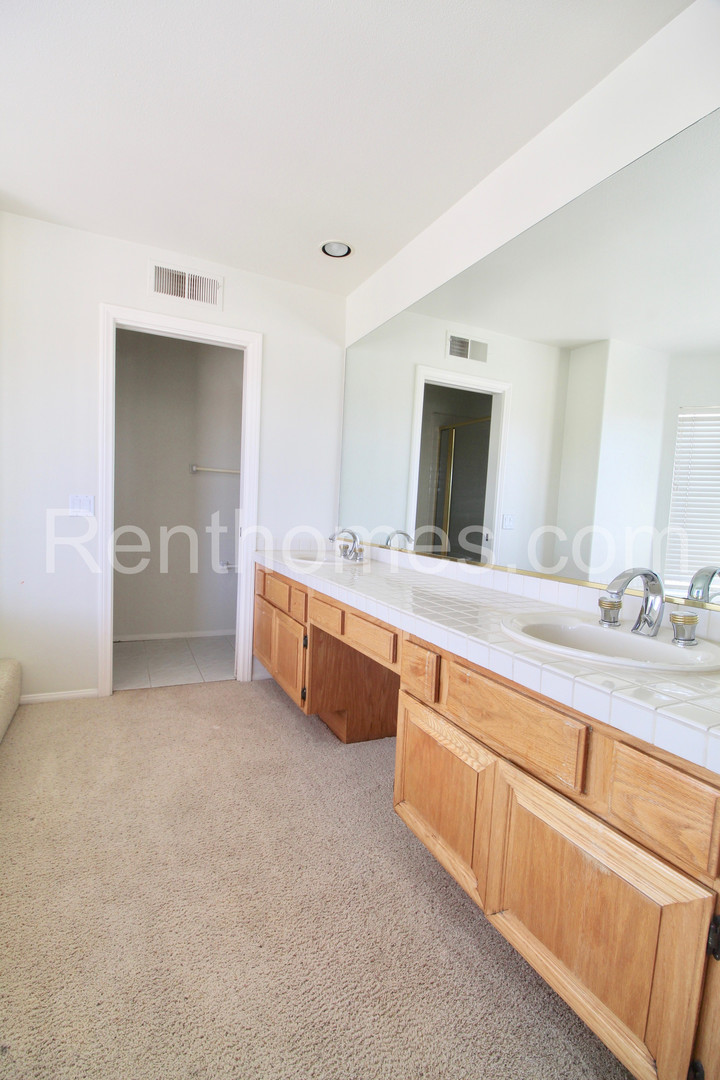 Beautiful 2 story home with nice valley views and full use of the Westwood community facilities. Wood floors downstairs. Formal dining room. Double sided fireplace between the family room and kitchen. Spacious eat in kitchen with center island, wood floors and ceramic tile counters. One bedroom down stairs with wood floors and mirrored wardrobe doors. One bathroom downstairs. Bedroom #2 & 3 have mirrored wardrobe doors. Upper hall bathroom has double sinks and a tub/shower combo. Spacious master suite with sitting room, private balcony, great views, double sided fireplace, vaulted ceilings, garden tub, separate shower, double sinks and a large walk in closet.